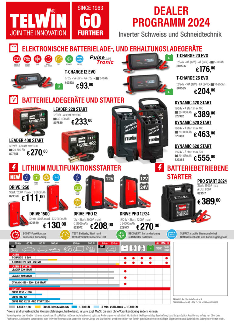 Der Hersteller Telwin hält für Sie wieder tolle Aktionen bereit. Und zwar Kfz Ladegeräte, Starthilfe, Jump Starter, Power Bank. Neueste Technologien und einfache Bedienung…