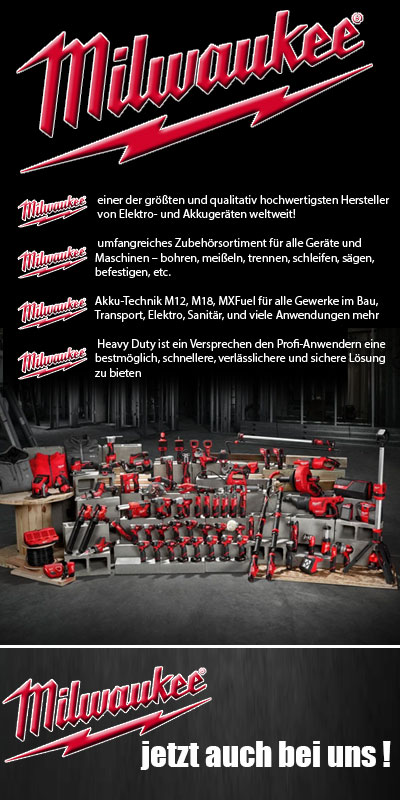 Milwaukee Werkzeug, Maschinen Sortiment jetzt bei HVI Schiller Milwaukee ist einer der größten und qualitativ hochwertigsten Hersteller von Elektrowerkzeug und Akkugeräten weltweit! Ein umfangreiches Zubehörsortiment für alle Geräte und Maschinen – bohren, meißeln, trennen, schleifen, sägen, befestigen, lässt Sie effektiv und sicher mit Milwaukee Werkzeug arbeiten. Milwaukee Werkzeug, Akku-Technik M12, M18, MXFuel für alle Gewerke…