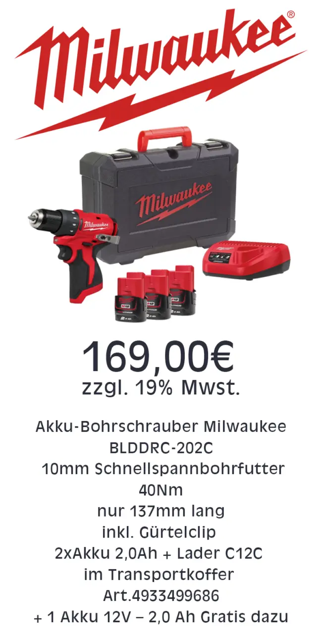 Akku-Bohrschrauber Milwaukee BLDDRC-202C